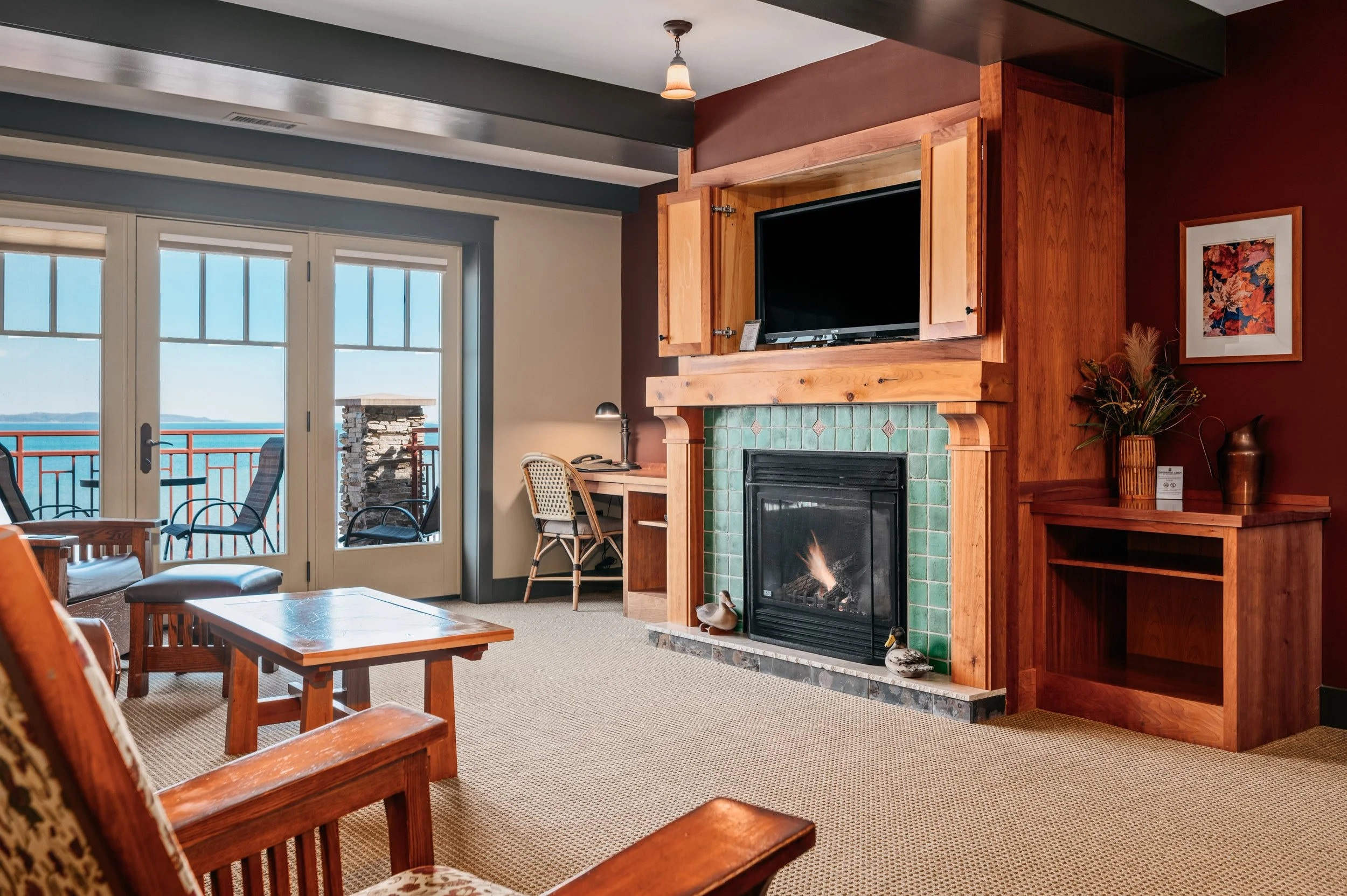 Step into the warm, craftsman-inspired charm of Tamarack Lodge. Set along the shores of East Grand Traverse Bay, our family-owned resort pairs classic Up North character with modern comforts β from expansive private beachfront to inviting indoor amenities, thoughtfully designed accommodations, and genuine, personalized hospitality.