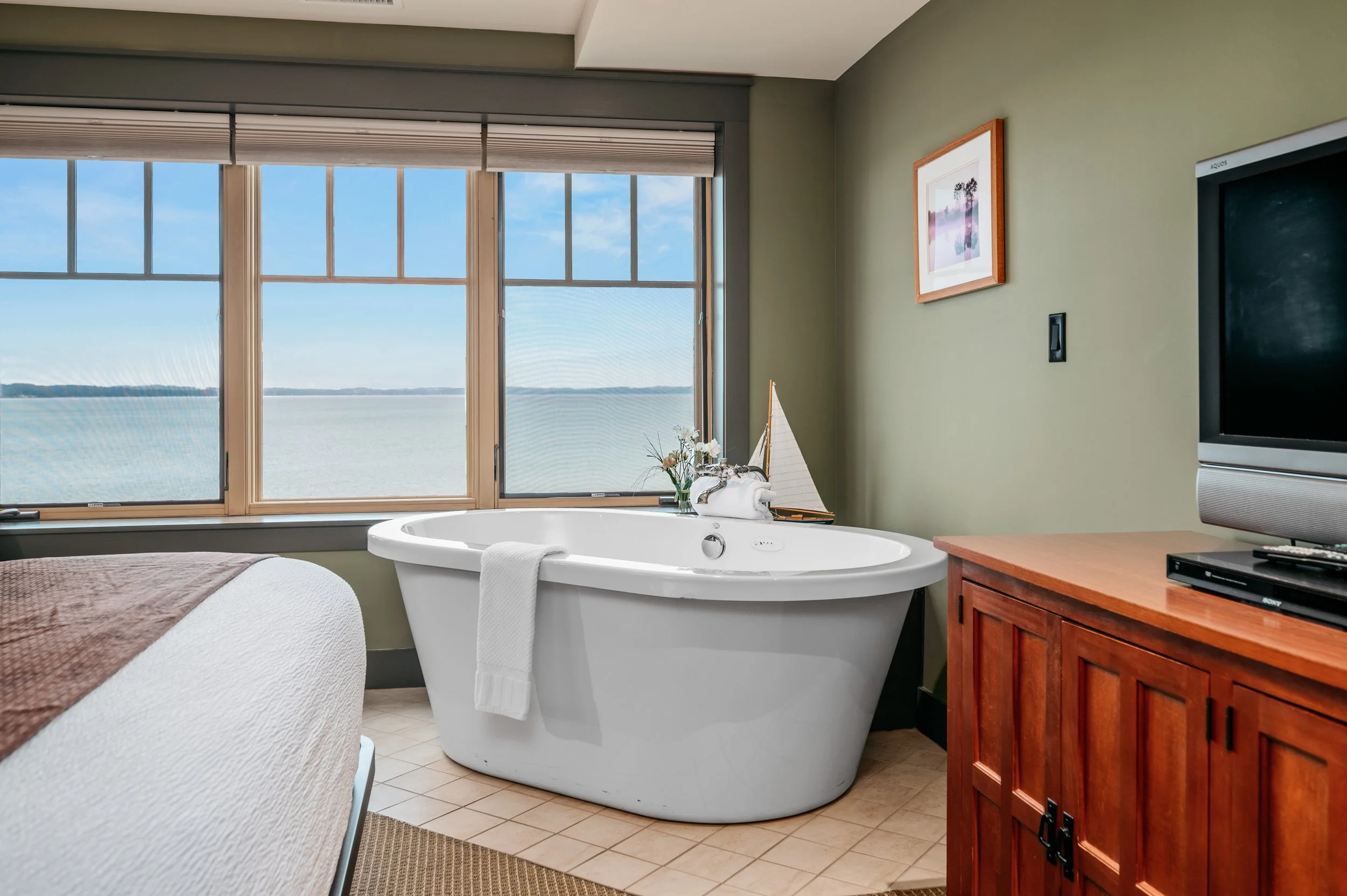 Comfortable One Bedroom Lakeview Suite overlooking East Grand Traverse Bay, ideal for couples and families.